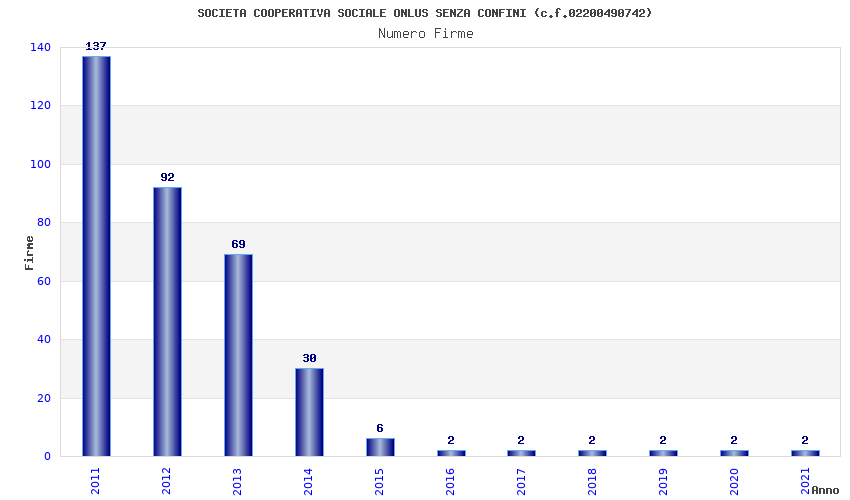 | Anno | Firme | Importi | Media | Naz. | Reg. | Prov. | Comu. |