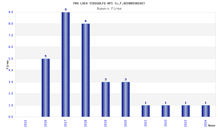 | Anno | Firme | Importi | Media | Naz. | Reg. | Prov. | Comu. |