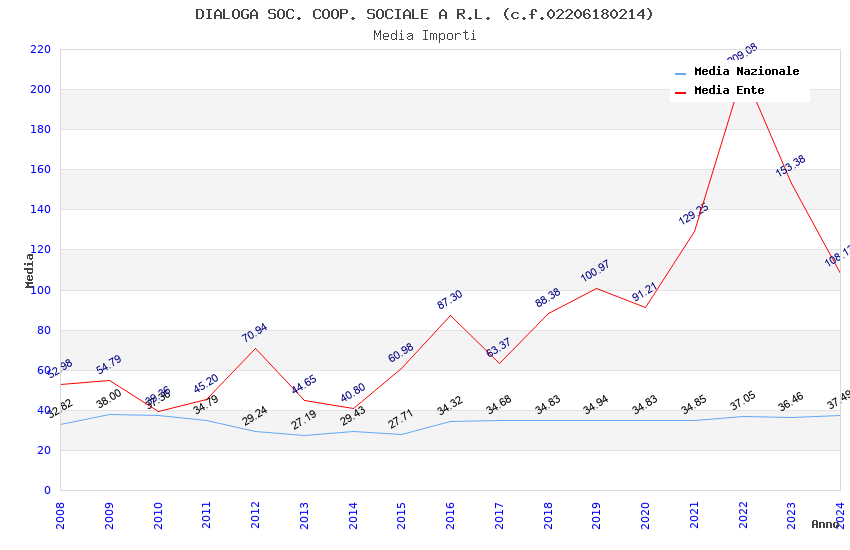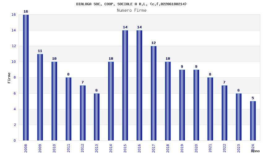 | Anno | Firme | Importi | Media | Naz. | Reg. | Prov. | Comu. |