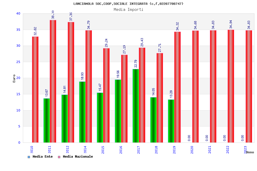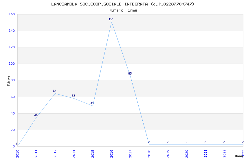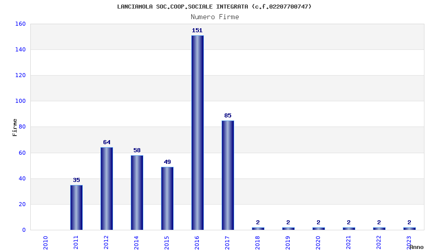| Anno | Firme | Importi | Media | Naz. | Reg. | Prov. | Comu. |