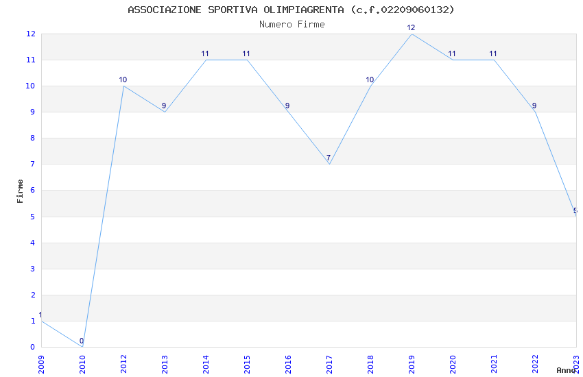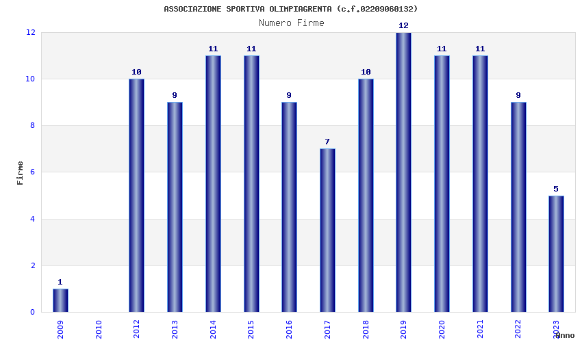 | Anno | Firme | Importi | Media | Naz. | Reg. | Prov. | Comu. |
