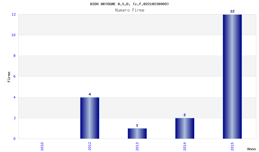 | Anno | Firme | Importi | Media | Naz. | Reg. | Prov. | Comu. |