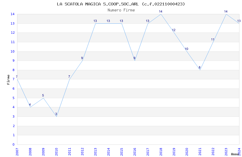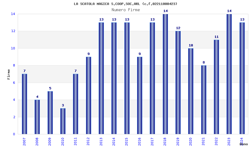 | 2014 | 13 | 335,81 | 25,83 | 42.152 | 1.127 | 424 | 19 |