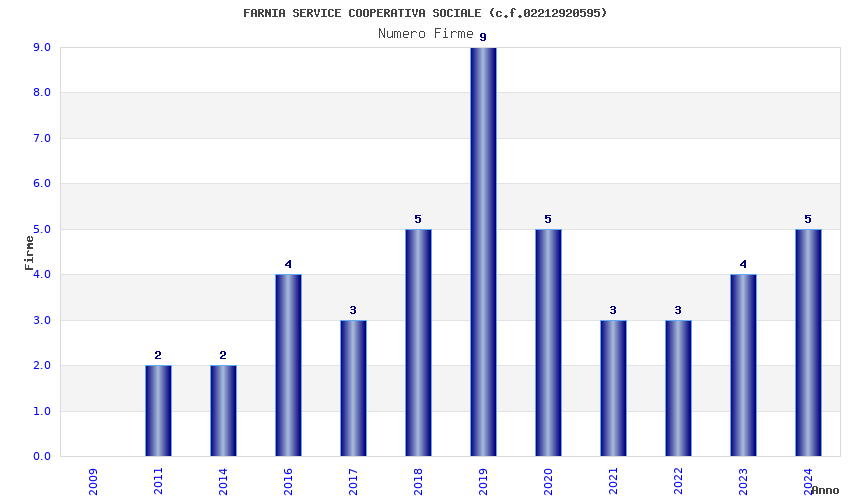 | Anno | Firme | Importi | Media | Naz. | Reg. | Prov. | Comu. |