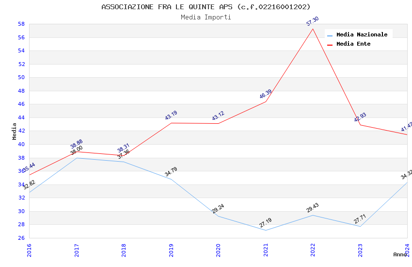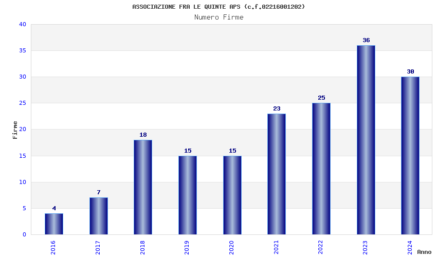 | Anno | Firme | Importi | Media | Naz. | Reg. | Prov. | Comu. |