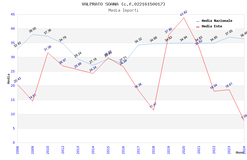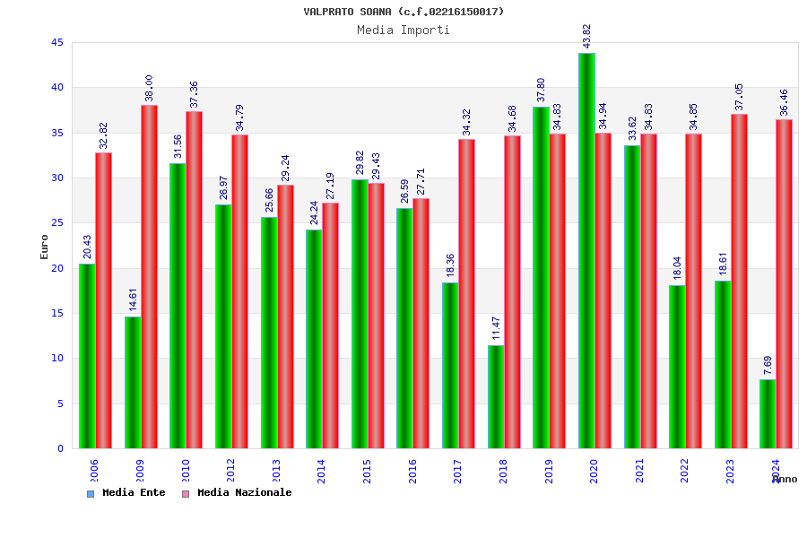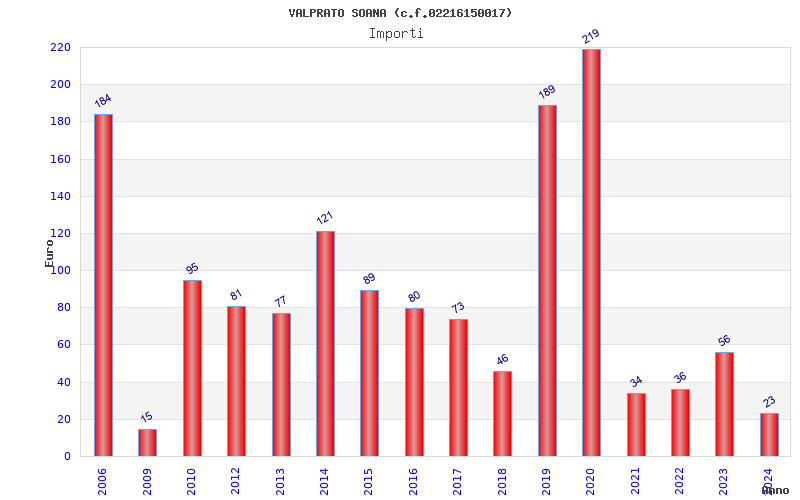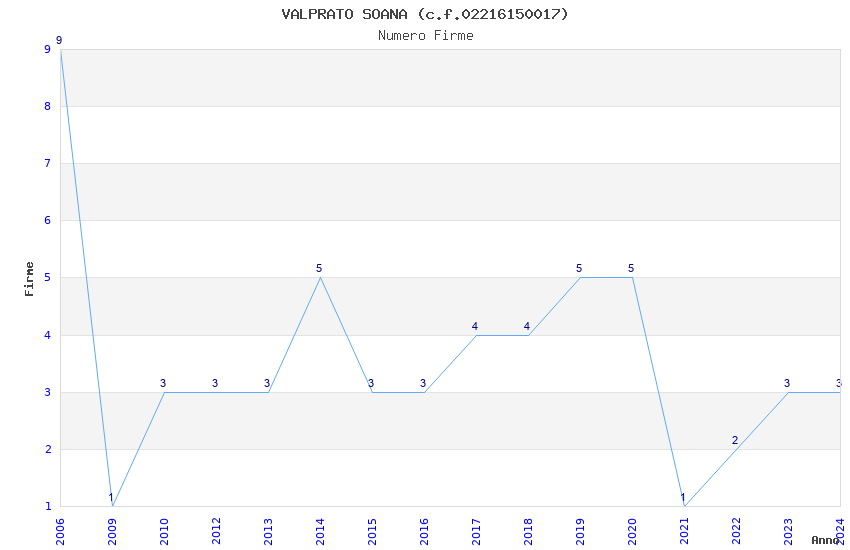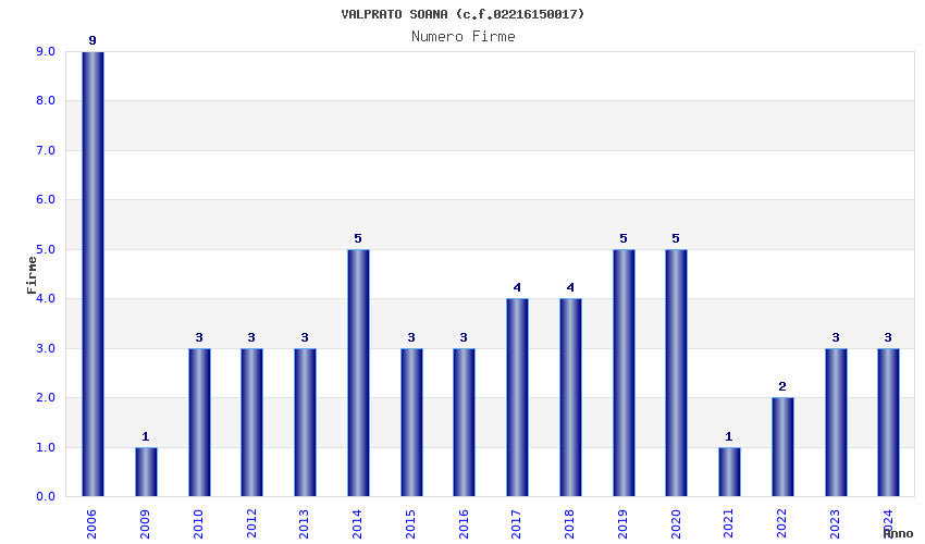 | Anno | Firme | Importi | Media | Naz. | Reg. | Prov. | Comu. |