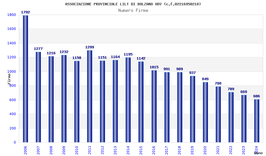 | Anno | Firme | Importi | Media | Naz. | Reg. | Prov. | Comu. |