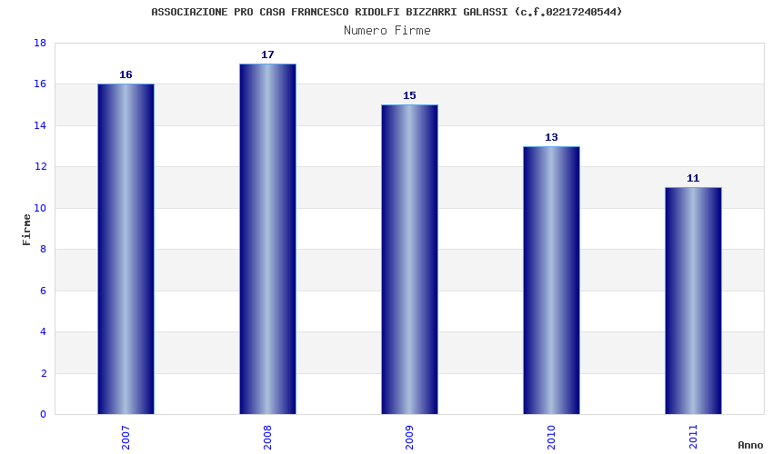 | Anno | Firme | Importi | Media | Naz. | Reg. | Prov. | Comu. |
