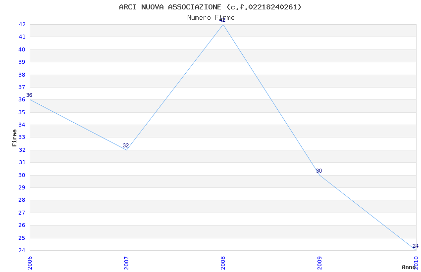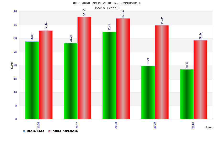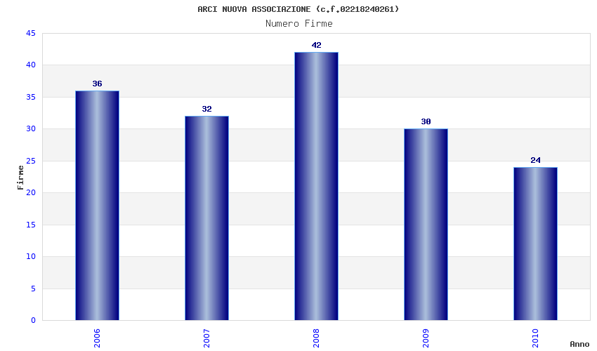 | Anno | Firme | Importi | Media | Naz. | Reg. | Prov. | Comu. |