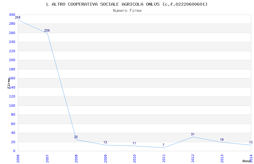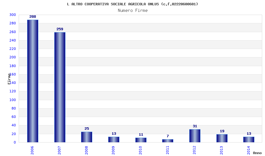 | 2014 | 13 | 205,52 | 15,81 | 45.230 | 3.738 | 253 | 18 |