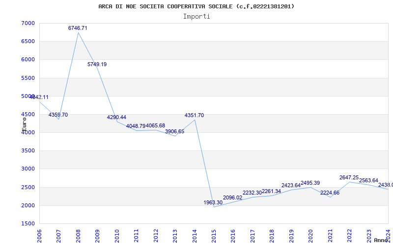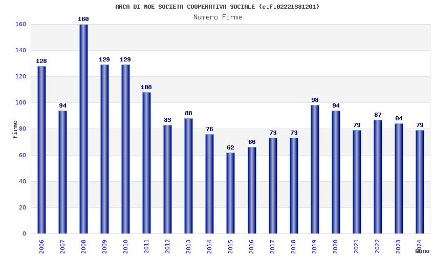 | Anno | Firme | Importi | Media | Naz. | Reg. | Prov. | Comu. |