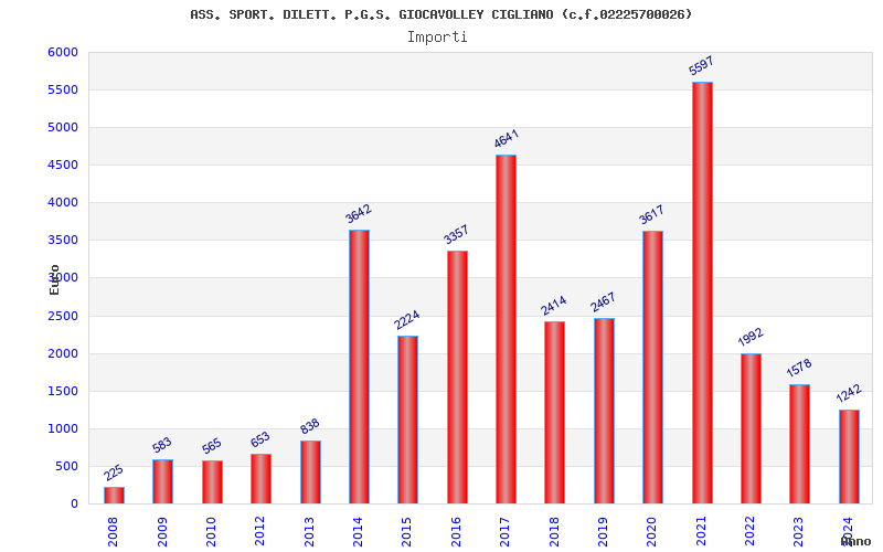 | 2021 | 45 | 5.597,16 | 124,38 | 9.704 | 657 | 25 | 1 |