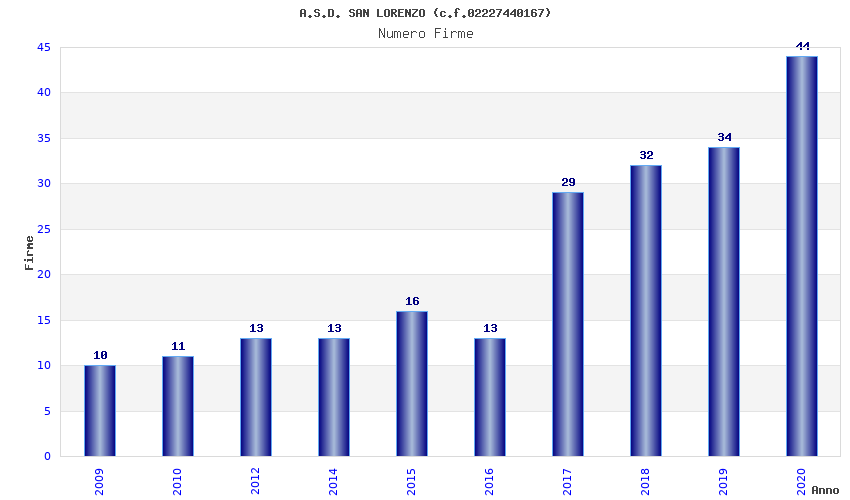 | Anno | Firme | Importi | Media | Naz. | Reg. | Prov. | Comu. |