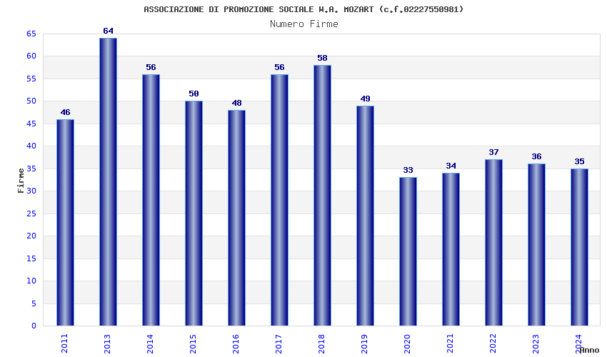 | Anno | Firme | Importi | Media | Naz. | Reg. | Prov. | Comu. |