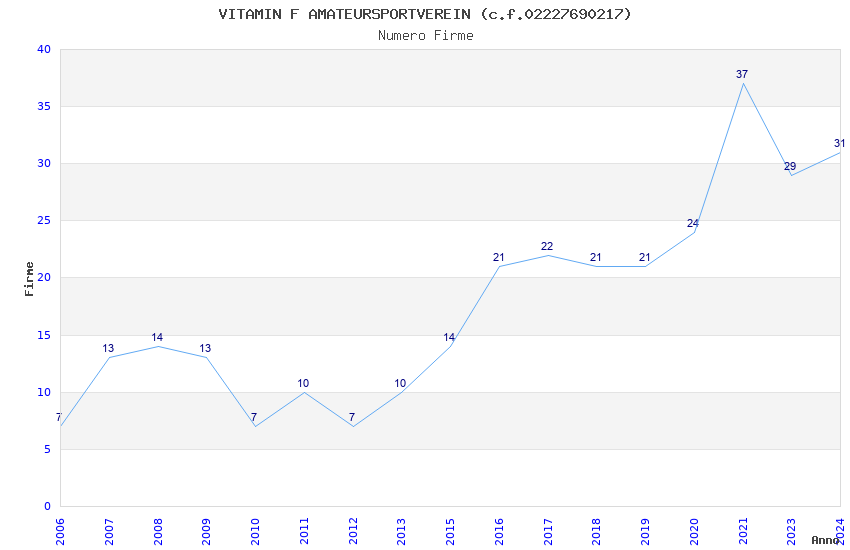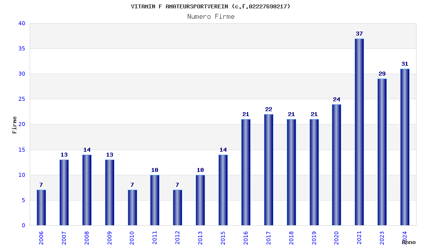 | 2021 | 37 | 2.700,78 | 72,99 | 19.170 | 492 | 264 | 14 |