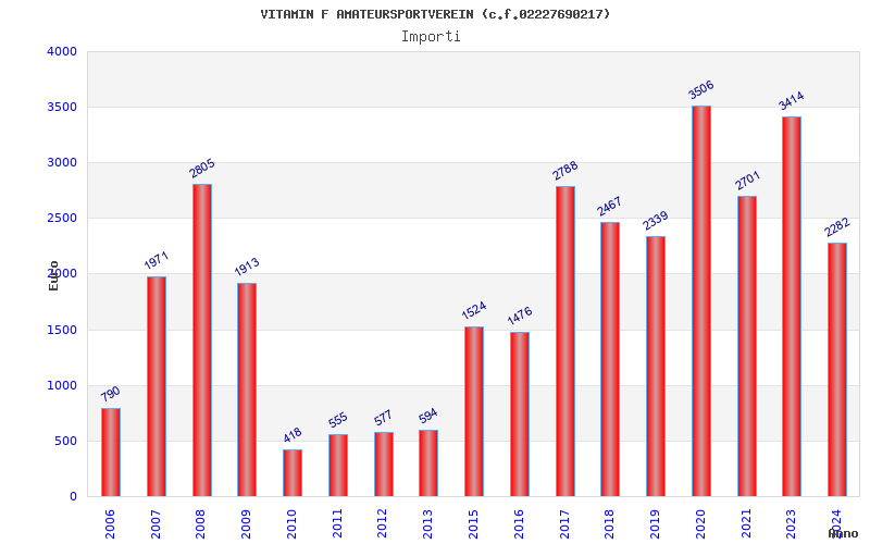 | 2020 | 24 | 3.506,27 | 146,09 | 15.719 | 384 | 208 | 10 |