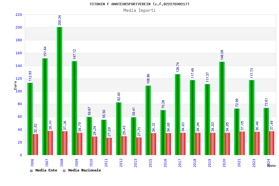 | Anno | Firme | Importi | Media | Naz. | Reg. | Prov. | Comu. |