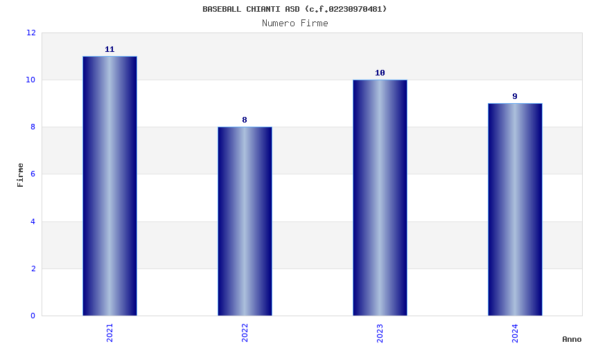| Anno | Firme | Importi | Media | Naz. | Reg. | Prov. | Comu. |