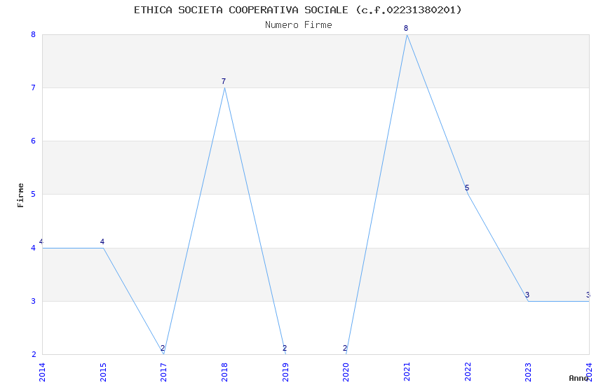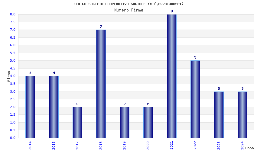 | Anno | Firme | Importi | Media | Naz. | Reg. | Prov. | Comu. |