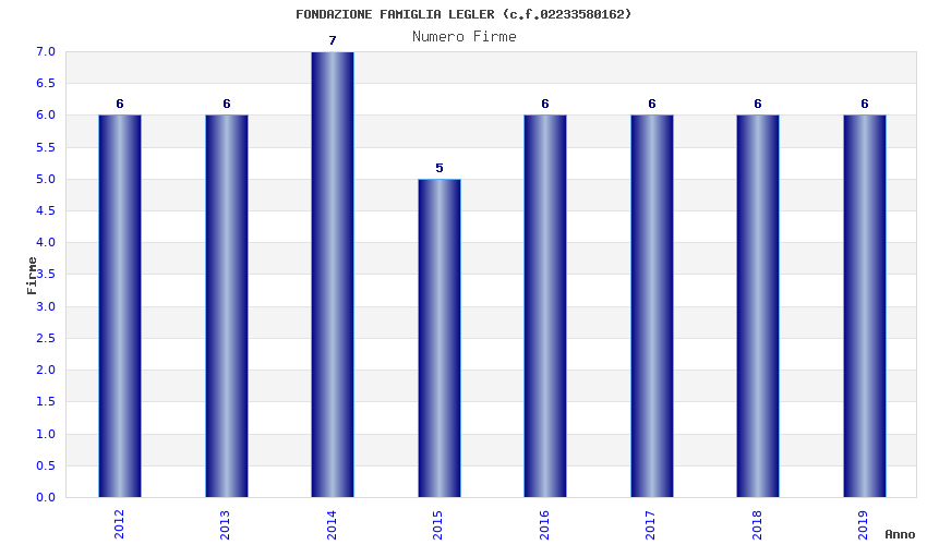 | Anno | Firme | Importi | Media | Naz. | Reg. | Prov. | Comu. |
