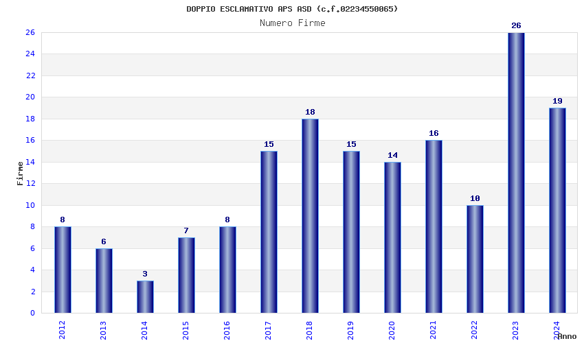 | Anno | Firme | Importi | Media | Naz. | Reg. | Prov. | Comu. |