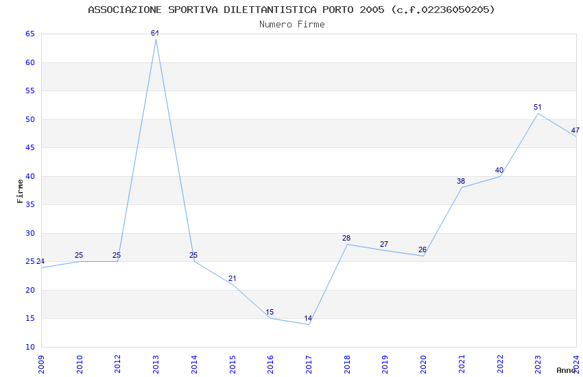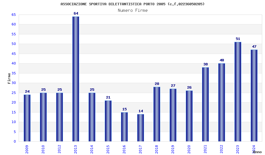 | 2023 | 51 | 2.224,66 | 43,62 | 21.864 | 4.647 | 127 | 5 |