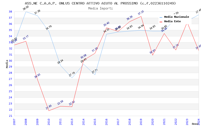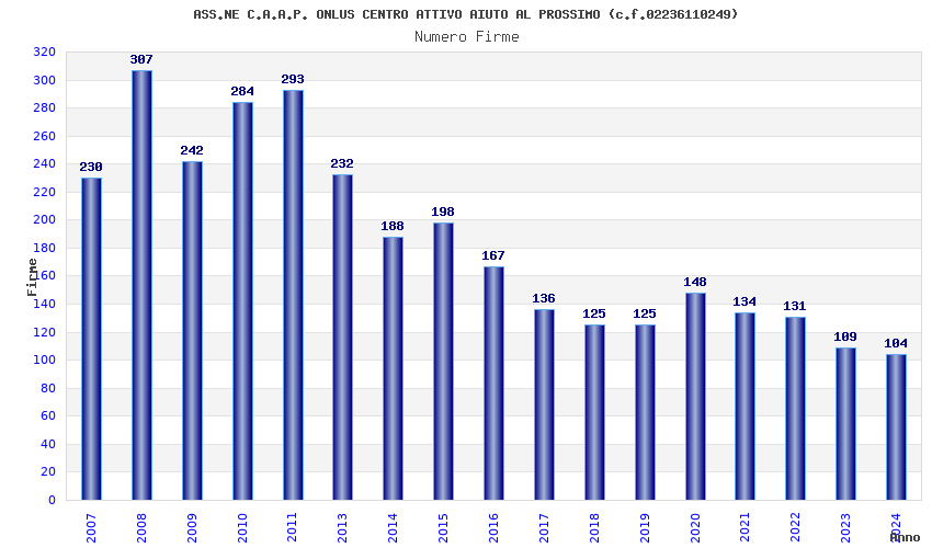 | Anno | Firme | Importi | Media | Naz. | Reg. | Prov. | Comu. |