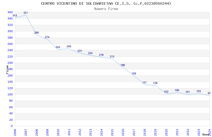 | Anno | Firme | Importi | Media | Naz. | Reg. | Prov. | Comu. |