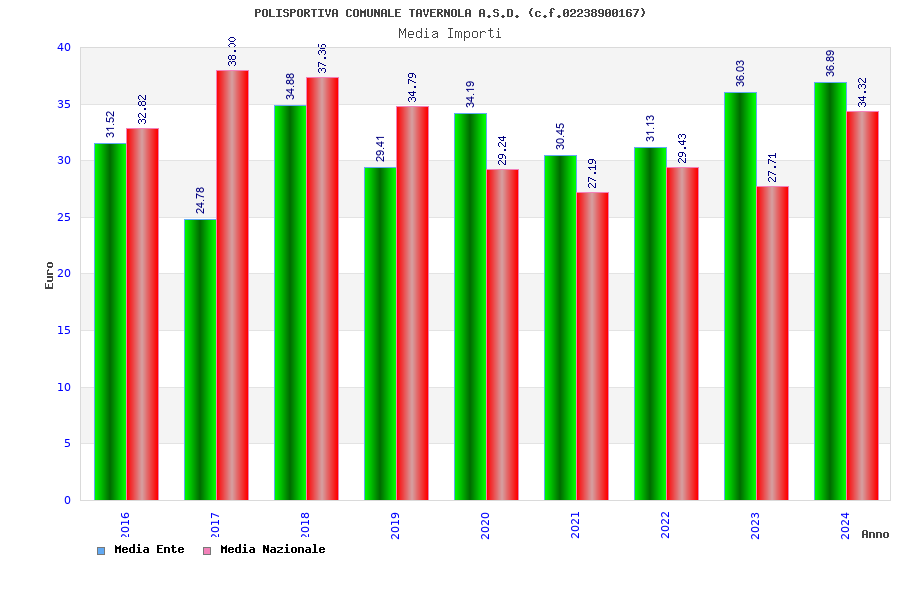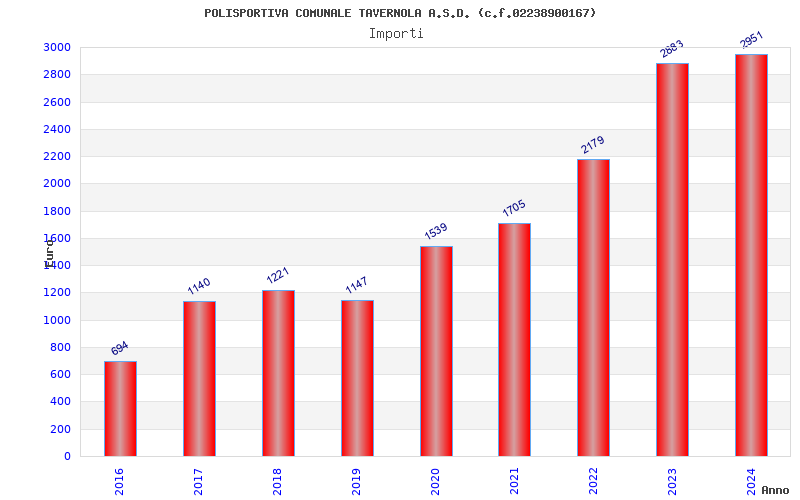 | Anno | Firme | Importi | Media | Naz. | Reg. | Prov. | Comu. |