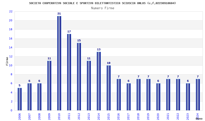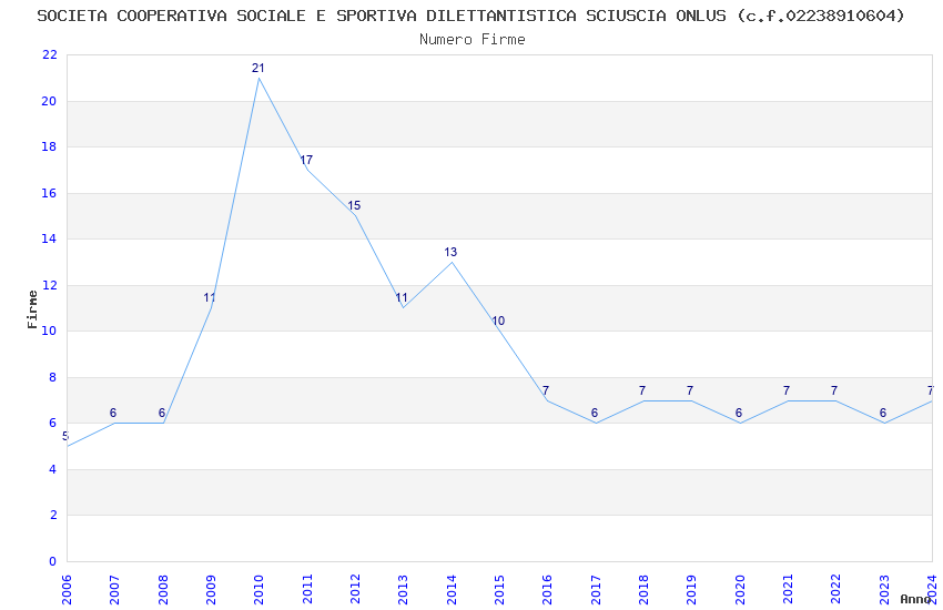 | 2010 | 21 | 281,23 | 13,39 | 34.304 | 2.831 | 180 | 6 |
