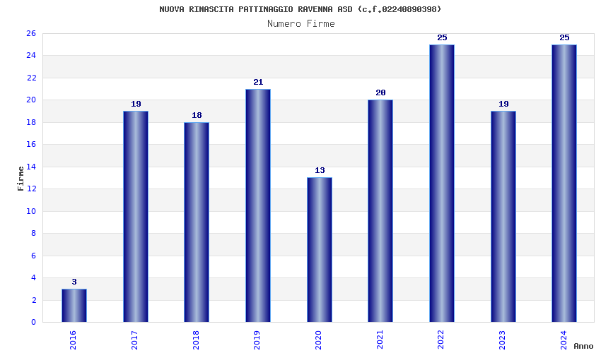 | Anno | Firme | Importi | Media | Naz. | Reg. | Prov. | Comu. |