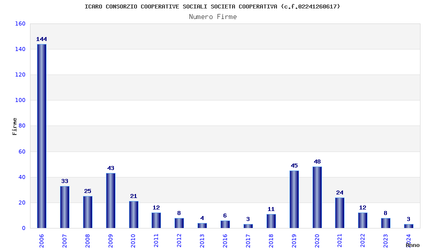 | Anno | Firme | Importi | Media | Naz. | Reg. | Prov. | Comu. |