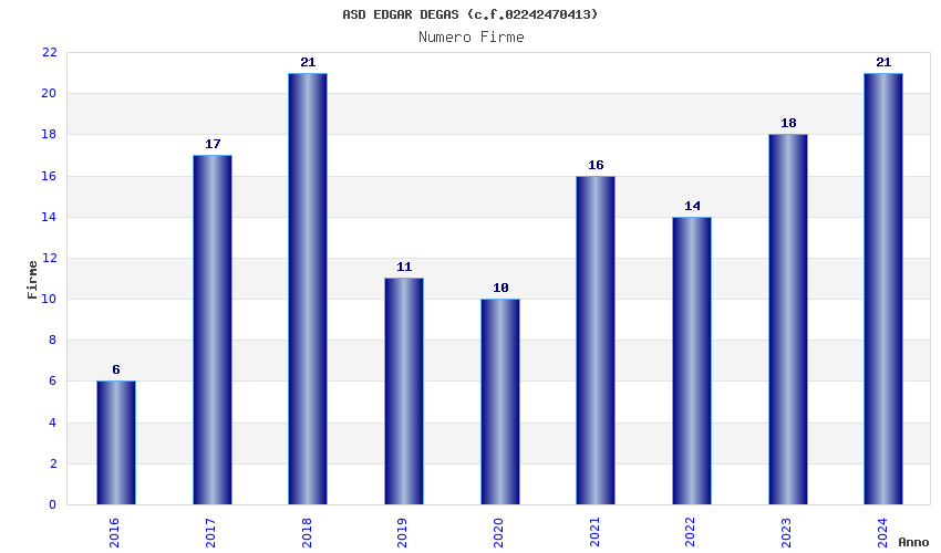| Anno | Firme | Importi | Media | Naz. | Reg. | Prov. | Comu. |