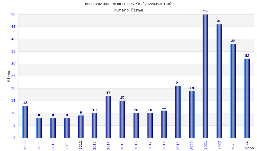 | Anno | Firme | Importi | Media | Naz. | Reg. | Prov. | Comu. |