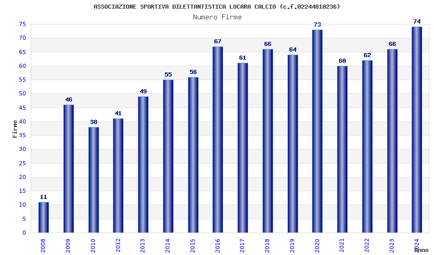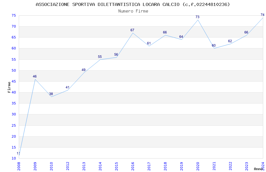 | 2024 | 74 | 3.794,01 | 51,27 | 14.091 | 1.301 | 257 | 9 |