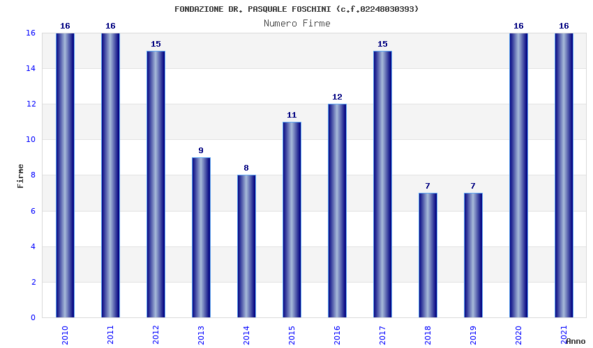| Anno | Firme | Importi | Media | Naz. | Reg. | Prov. | Comu. |