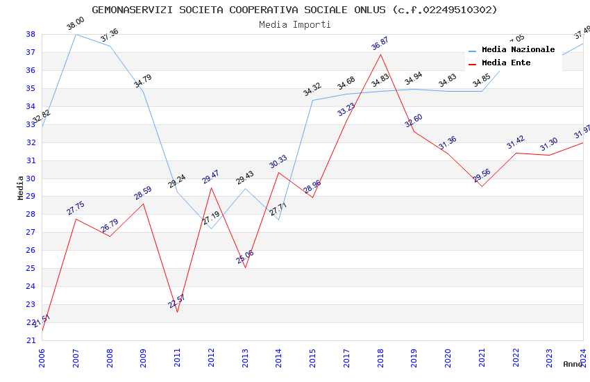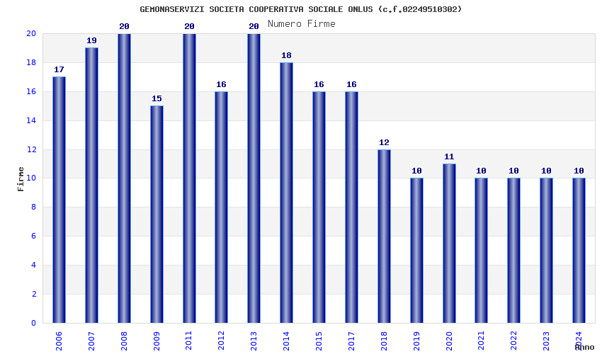 | Anno | Firme | Importi | Media | Naz. | Reg. | Prov. | Comu. |