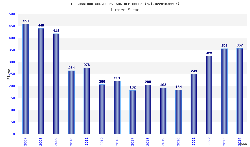 | 2023 | 356 | 6.621,21 | 18,60 | 8.061 | 1.013 | 38 | 3 |
