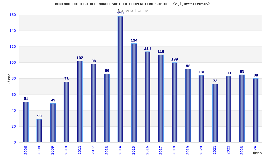 | Anno | Firme | Importi | Media | Naz. | Reg. | Prov. | Comu. |