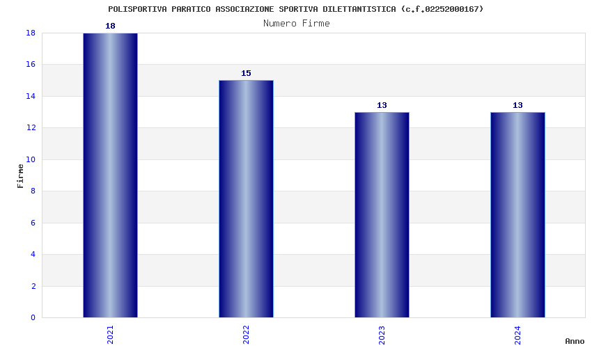 | Anno | Firme | Importi | Media | Naz. | Reg. | Prov. | Comu. |