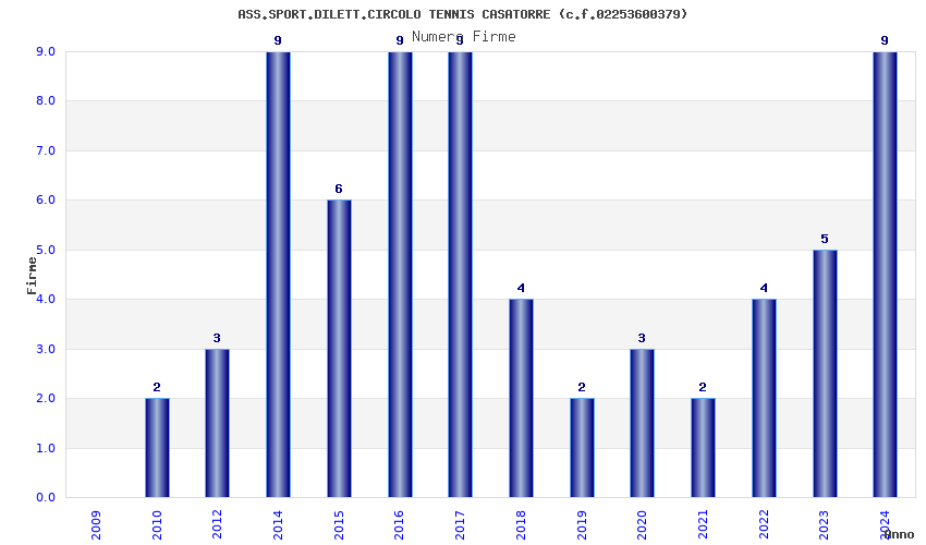 | Anno | Firme | Importi | Media | Naz. | Reg. | Prov. | Comu. |