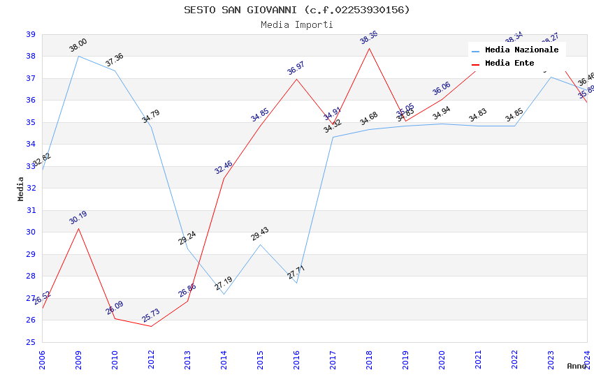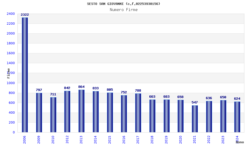 | Anno | Firme | Importi | Media | Naz. | Reg. | Prov. | Comu. |