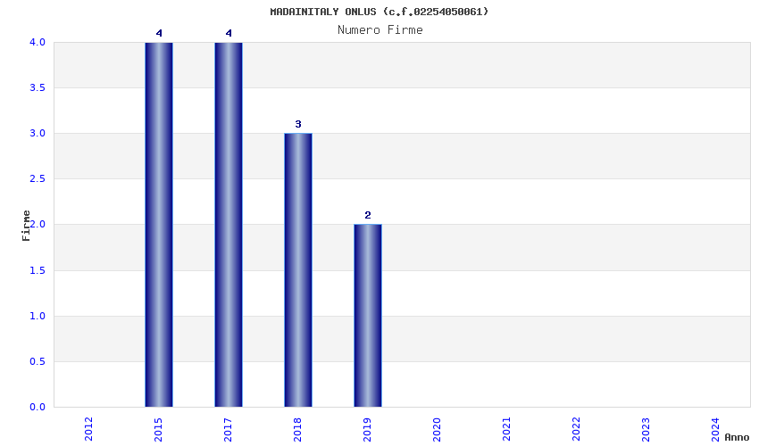 | Anno | Firme | Importi | Media | Naz. | Reg. | Prov. | Comu. |