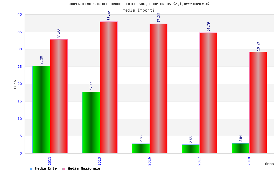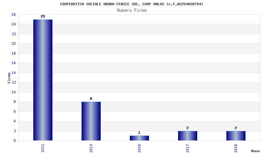 | Anno | Firme | Importi | Media | Naz. | Reg. | Prov. | Comu. |