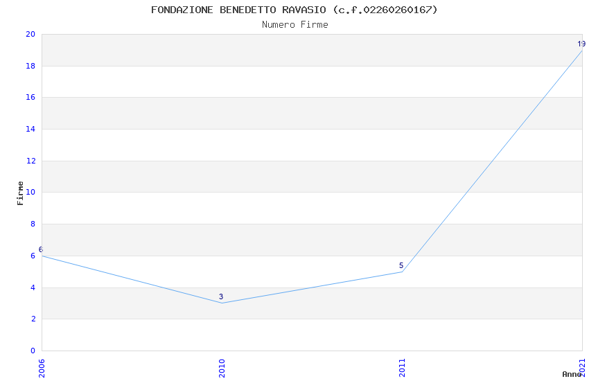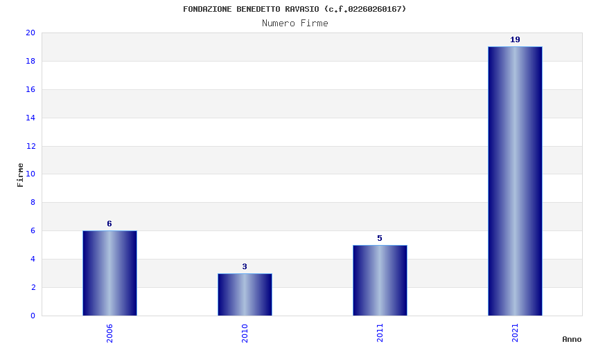 | Anno | Firme | Importi | Media | Naz. | Reg. | Prov. | Comu. |
