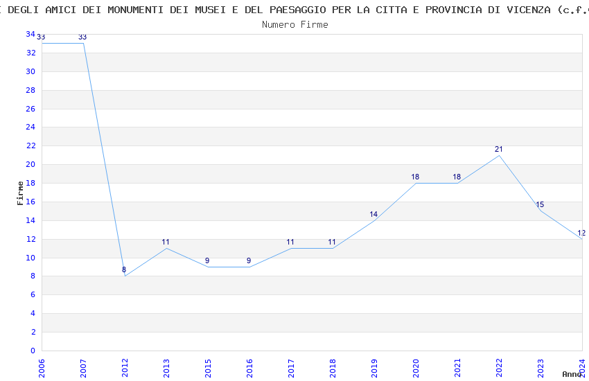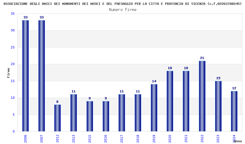 | Anno | Firme | Importi | Media | Naz. | Reg. | Prov. | Comu. |