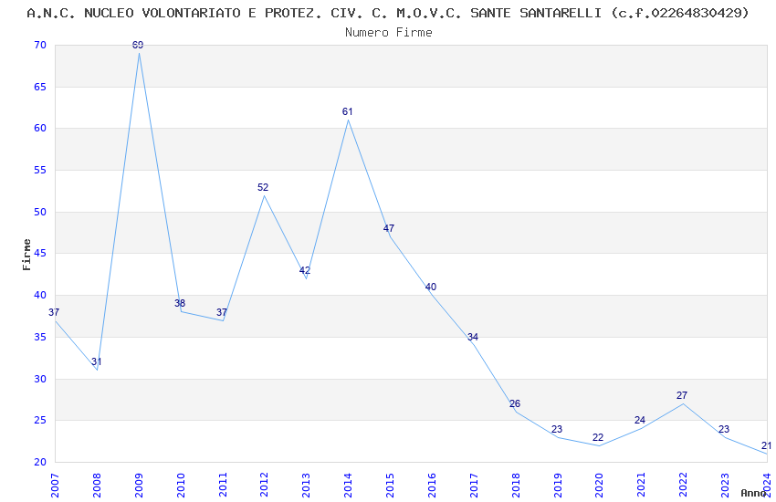 | 2009 | 69 | 1.655,92 | 24,00 | 18.438 | 459 | 184 | 21 |