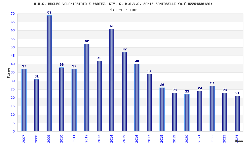 | Anno | Firme | Importi | Media | Naz. | Reg. | Prov. | Comu. |