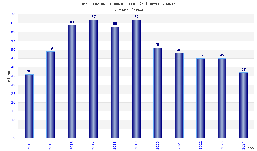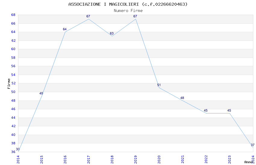 | 2019 | 67 | 2.140,56 | 31,95 | 22.927 | 1.393 | 144 | 12 |