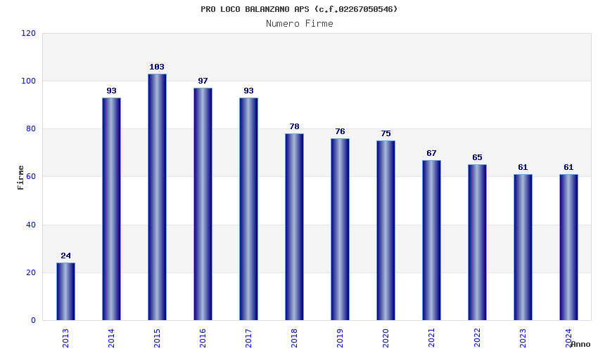 | Anno | Firme | Importi | Media | Naz. | Reg. | Prov. | Comu. |